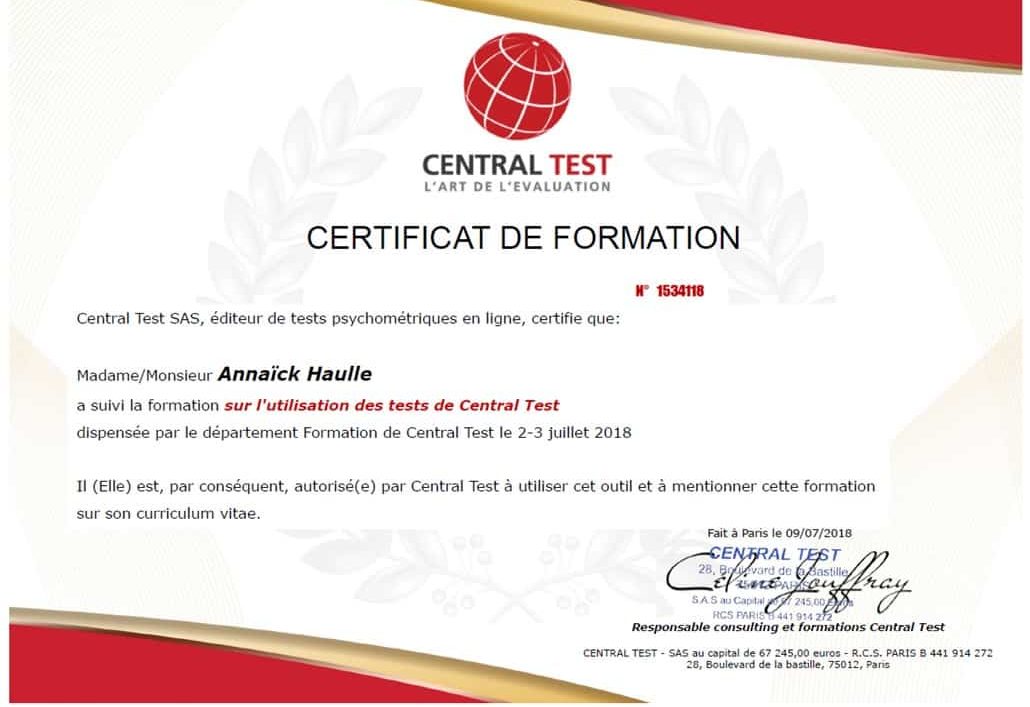 Il existe des milliers de tests et j’en utilise plusieurs dans mes bilans et j’ai pour cela obtenu une certification pour l’utilisation de tests psychotechniques via Central Test.